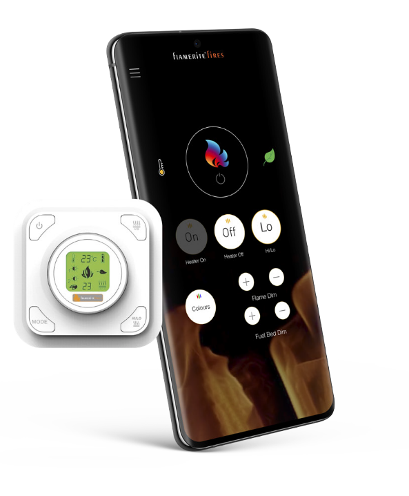 Nitra Flame can be controlled manually, by remote or with our Fire eControl app. An easy to use iOS & Android Bluetooth app with advance features to control your fire