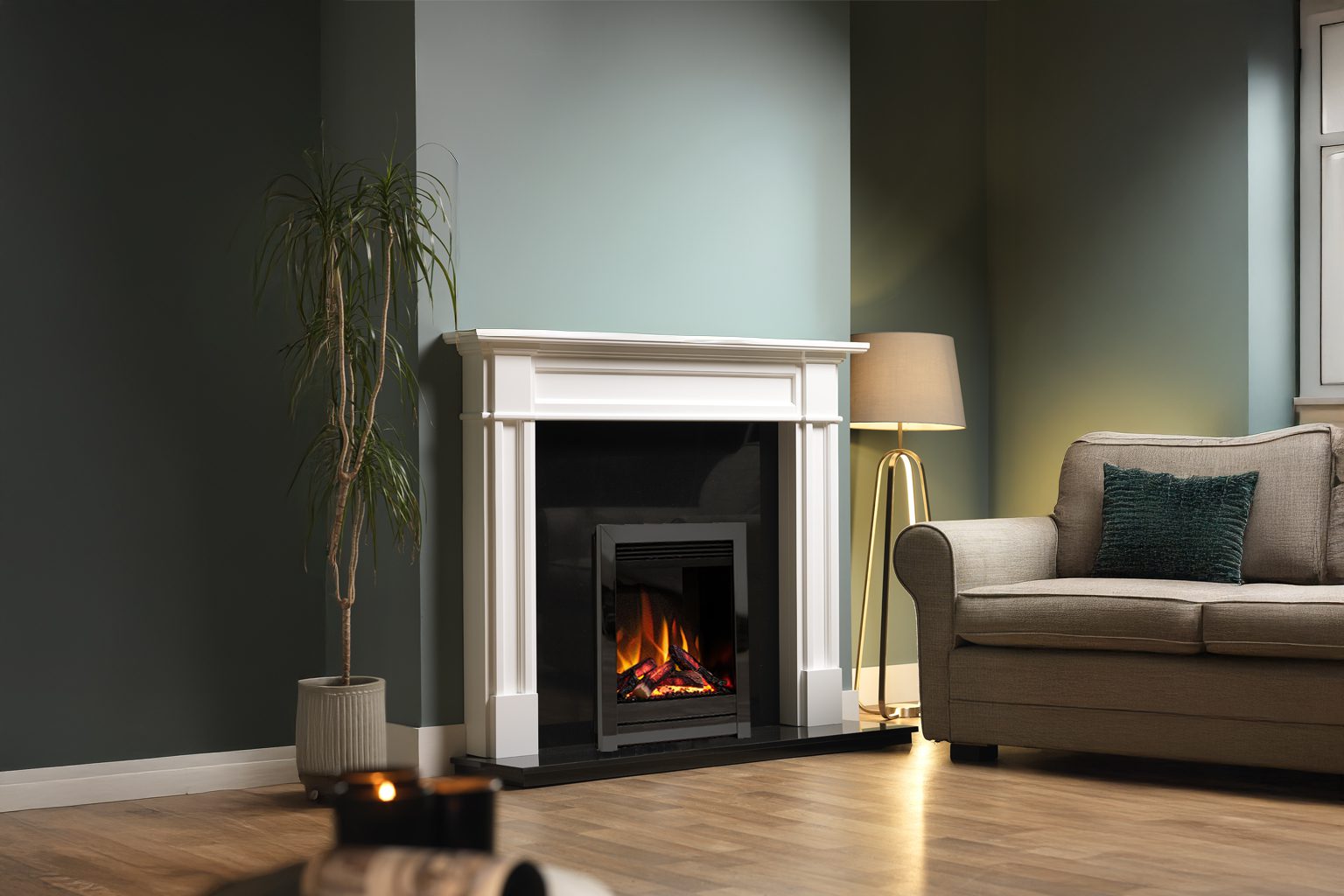 This elegant Fireplace Suite brings classic design into the modern home, pairing beautifully with any E-FX inset fire. The detailed mantel and refined proportions create a timeless focal point, while the vivid flame effect adds warmth, ambience and contemporary comfort to your living space.