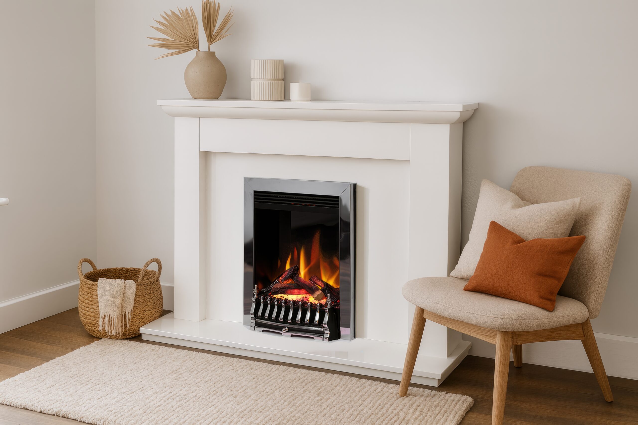 The Tama captures the essence of a classic inset fire, reimagined with refined detailing and a polished contemporary edge. Its traditional fret design and elegant metallic finish bring warmth and character to any living space, blending seamlessly with both period and modern interiors. With its deep, glowing ember bed and lifelike flame display, the Tama creates an inviting focal point that draws the eye and enhances the atmosphere of your home. Whether styled in brass for timeless appeal, silver or Gunmetal, this offers a traditional look and sophistication to any room.
